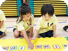 - English Topicは、7週間に一度のサイクルで決められた1つの大きなテーマ、3つの小さなサブ・テーマに沿って、ゲームやドリル、対話や様々な体験活動などを通じて、自然な語彙・表現を身に付けるプログラムです。教科書の語句を機械的に暗記するのではなく、視覚教材を活用して語句が持つイメージを関連付け、正しい発音をインプットします。さらに、現実の世界でどのように使われているかを五感で体験し、習得します。